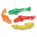 La dulzura del mar en Vidal. Divertidos y riquísimos tiburones de golosina con sabor fresa y diferentes colores.