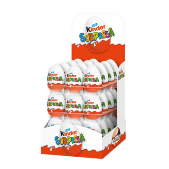 Kinder Sorpresa combina el delicioso chocolate Kinder, con una sorpresa y un juego en su interior. Contiene 36 huevos. Sin gluten.