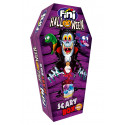 Terrorífico ataud ideal para Halloween. Contiene 3 Caretos de Fresa, 2 Fini Booom Vampire, 1 bolsa de chuches, 2 Lenguas de Fresa, 2 Fini Zombie y 3 Finitronc envuelto Twisty. Todo ambientado en Halloween.